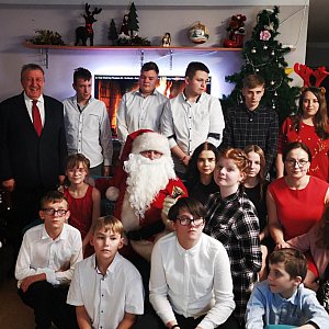 Tradycyjnie spotkanie w wigilijnej atmosferze to wspólna kolacja pracowników oraz dzieci tego ośrodka. Więc również nie zabrakło osoby z Powiatu Drawskiego którą jest odpowiedzialna za prowadzenie Placówki Opiekuńczo - Wychowawczej w osobie samego starosty Pana Stanisława Cybyli.