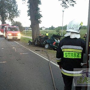 Dziś około godz.4.30 zostaliśmy zadysponowani do wypadku drogowego na ul.Czaplinecką ( DK 20 ). Po dojeździe stwierdzono iż na wysokości ogródków działkowych samochód osobowy z niewyjaśnionych przyczyn zjechał z jezdni i uderzył w drzewo. Przybyły na miejscu Zespół Ratownictwa Medycznego stwierdził zgon dwóch mężczyzn, zarówno kierujący jak i pasażer Daewoo Nexia ponieśli śmierć na miejscu. Aktualnie na miejscu zdarzenia prowadzone są czynności prokuratorskie co do ustalenia przyczyn zdarzenia. Na miejscu : OSP Złocieniec, PSP Drawsko Pom., WSP Budowo, Policja, Pogotowie Ratunkowe, Prokurator.