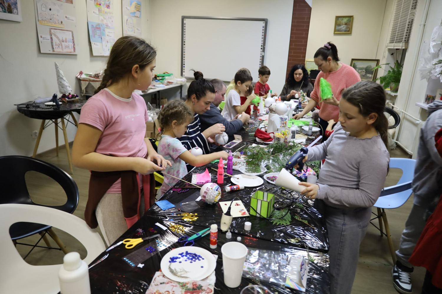 Podczas warsztatów uczestnicy wykonywali kartki świąteczne, a także ozdabiali styropianowe kule – bombki oraz stożki w kształcie choinek. Do dekoracji wykorzystano bogaty wybór materiałów plastycznych, takich jak kolorowe piórka, cekiny, koraliki, gotowe wyklejanki oraz serwetki świąteczne używane w technice decoupage. Różnorodność ozdób pozwoliła każdemu stworzyć niepowtarzalne, pełne świątecznego uroku prace.