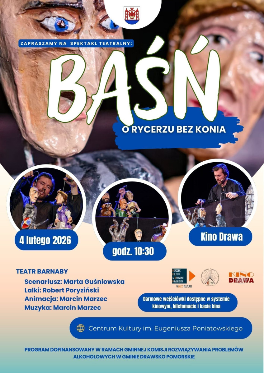 Już 4 lutego 2026 o godz. 10:30 w Centrum Kultury im. Eugeniusza Poniatowskiego pokażemy baśń, która z pozoru jest prosta, a w rzeczywistości opowiada o potrzebie bliskości, akceptacji i poszukiwaniu swojego miejsca „Baśń o rycerzu bez konia” to historia rycerza, który nie spełnia oczywistego oczekiwania świata. Brakuje mu konia – a może to świat zbyt łatwo przyzwyczaił się do schematów? Spektakl stawia pytania, zostawia przestrzeń do myślenia i robi to z dużą kulturą formy – poprzez lalkę, ruch i muzykę