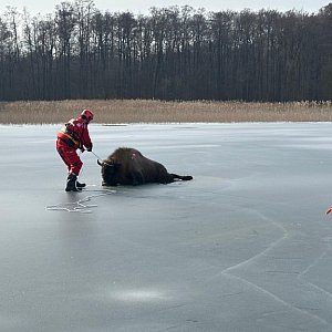– Po godz. 8.00 służby otrzymały zgłoszenie z miejscowości Drzewoszewo (pow. wałecki) o leżącym żywym żubrze, który znajduje się około 130 metrów od brzegu na jeziorze Bytyń Wielki. Na miejsce zadysponowano cztery zastępy straży pożarnej oraz łódź ratowniczą – poinformował rzecznik prasowy Komendy Wojewódzkiej PSP w Szczecinie asp. Dariusz Schacht.