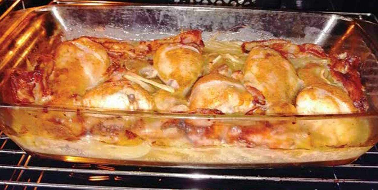 Całość zalać piwem i włożyć do rozgrzanego do 200 stopni C piekarnika.