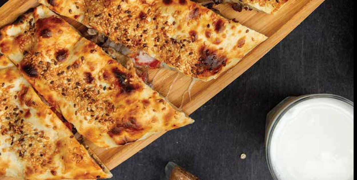 Średniej wielkości blachę lub naczynie żaroodporne posmarować masłem i posypać mąką pszenną, przełożyć połowę ciasta na blachę i dobrze rozprowadzić.