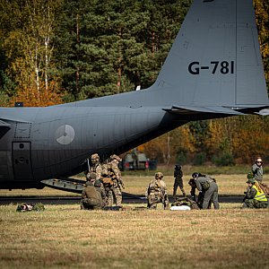 Centralnym punktem dnia była ewakuacja żołnierzy holenderskich z wykorzystaniem samolotu transportowego C-130H Hercules.